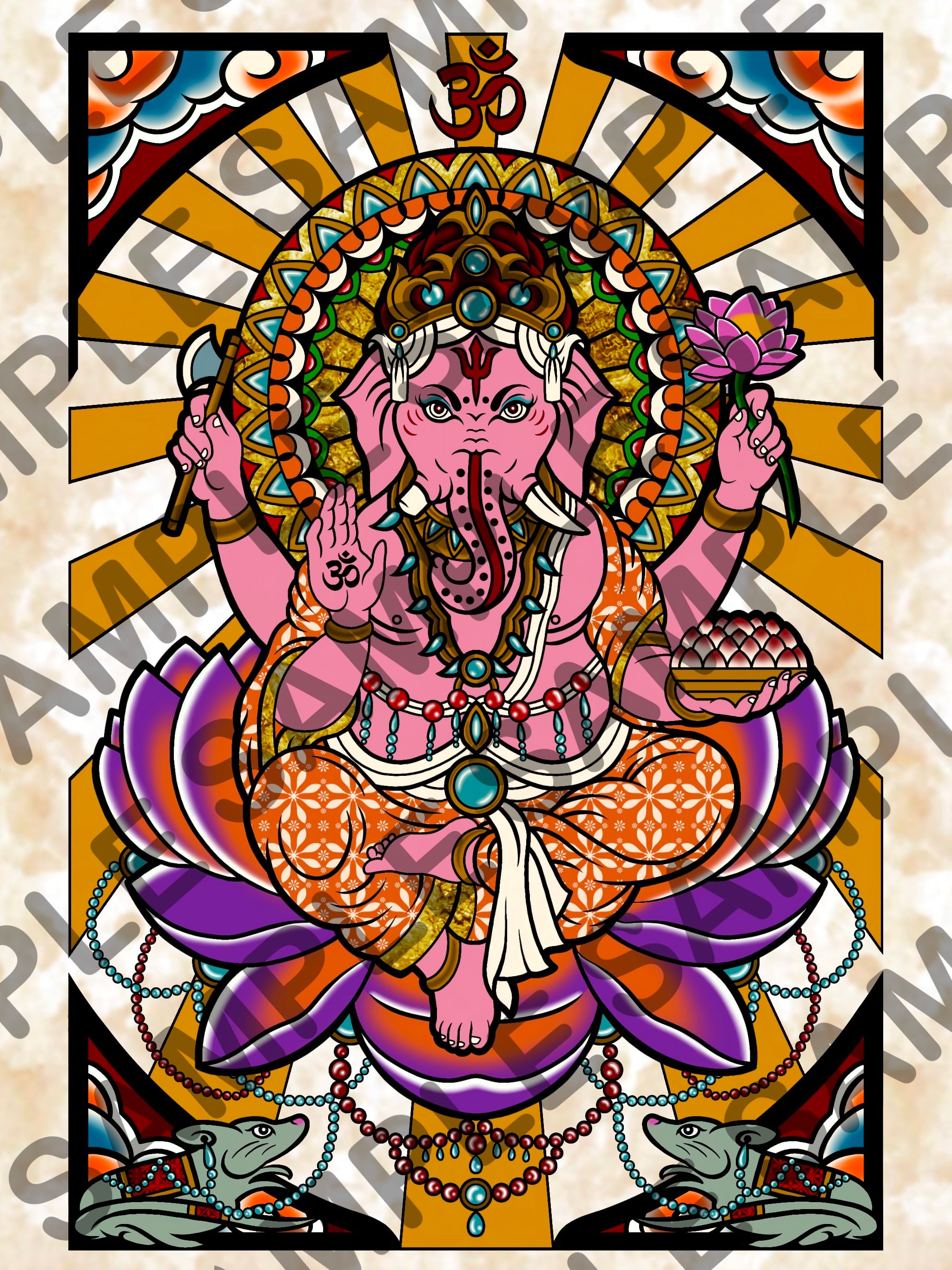 象頭の神ガネーシャを描いた作品