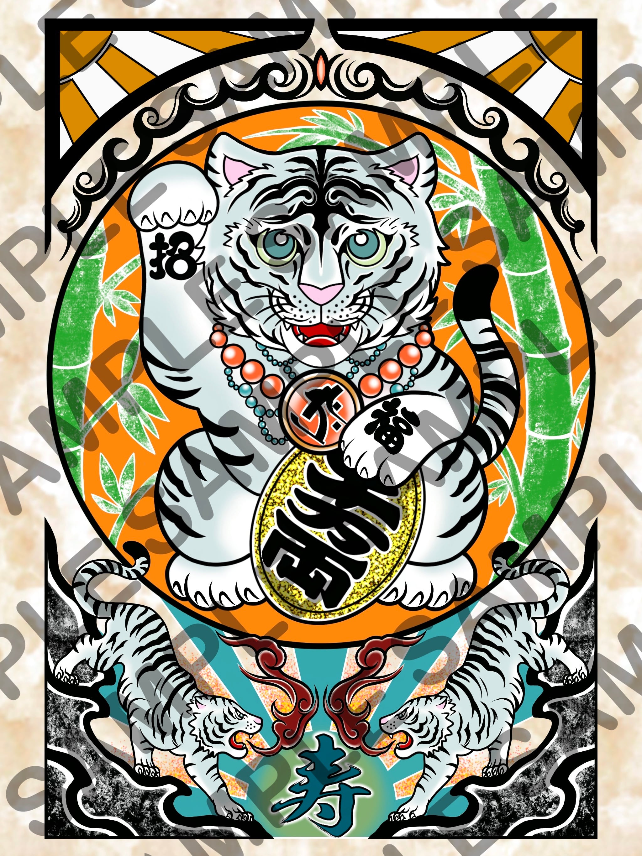 【Digital Wallpaper】招き虎 白虎|Maneki Tiger White Tiger Smartphone & Tablet Wallpaper (2048×4320px, JPG)