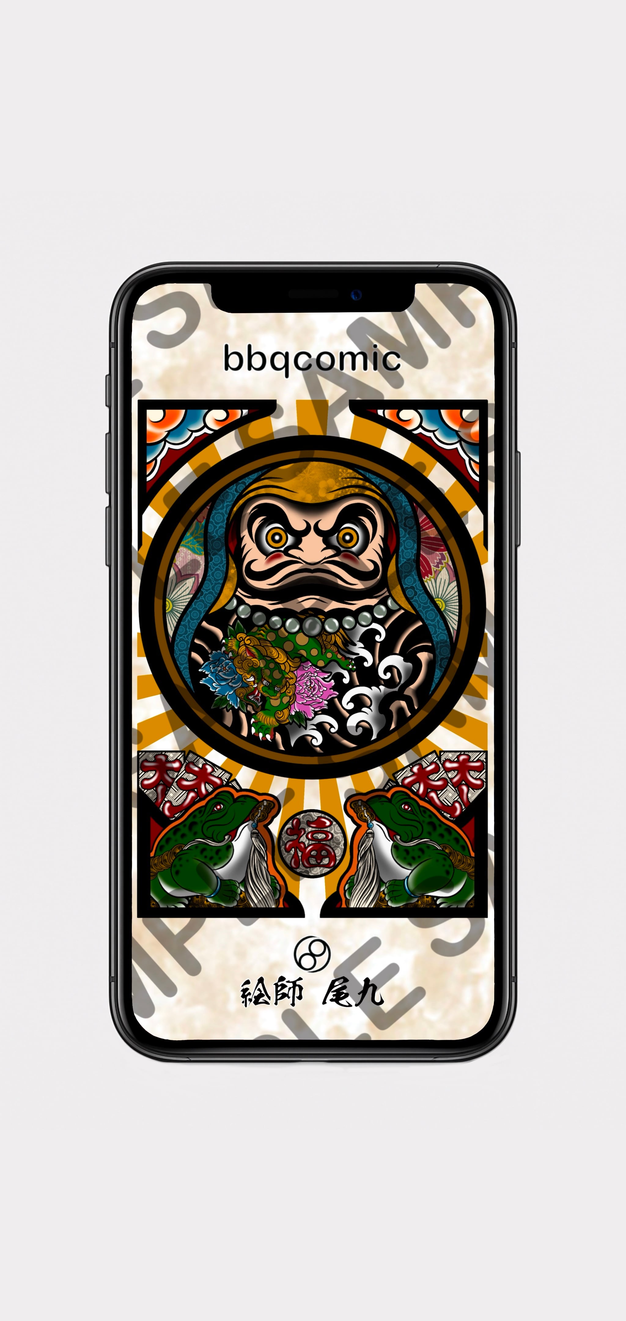 【Digital Wallpaper】刺青達磨 唐獅子牡丹|Irezumi Daruma with Karajishi & Peony Smartphone & Tablet Wallpaper (2048×4320px, JPG)